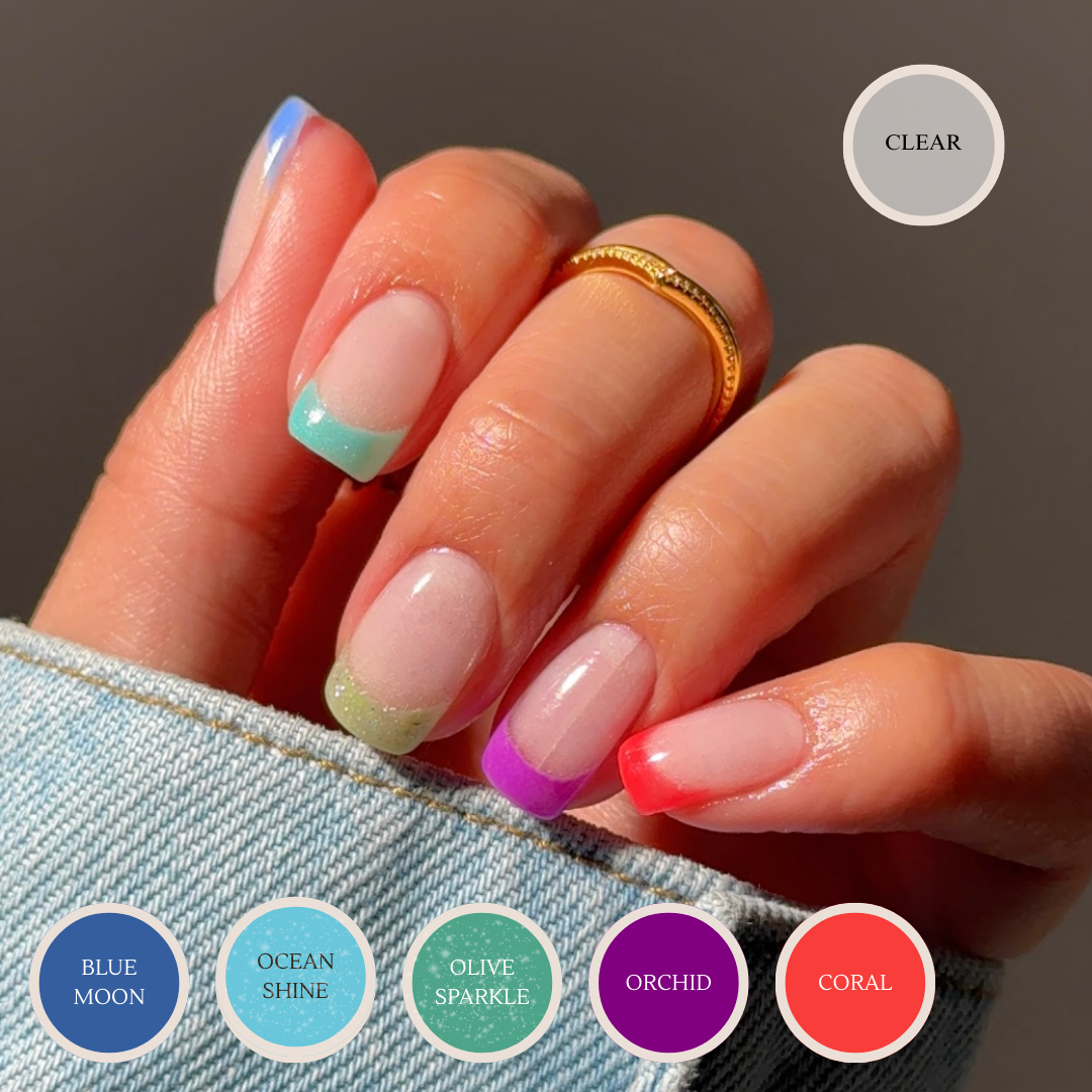 Clear er et transparent pulver som kan brukes som et beskyttende lag over naturlige negler, eller som et topplag for å bevare glitter og vakre farger uten å file dem bort. Perfekt for å sikre at manikyren din forblir skinnende og feilfri. For optimal holdbarhet anbefaler vi å påføre 2 til 3 lag