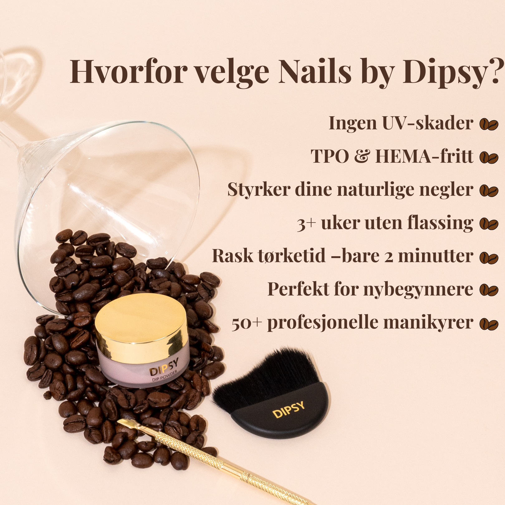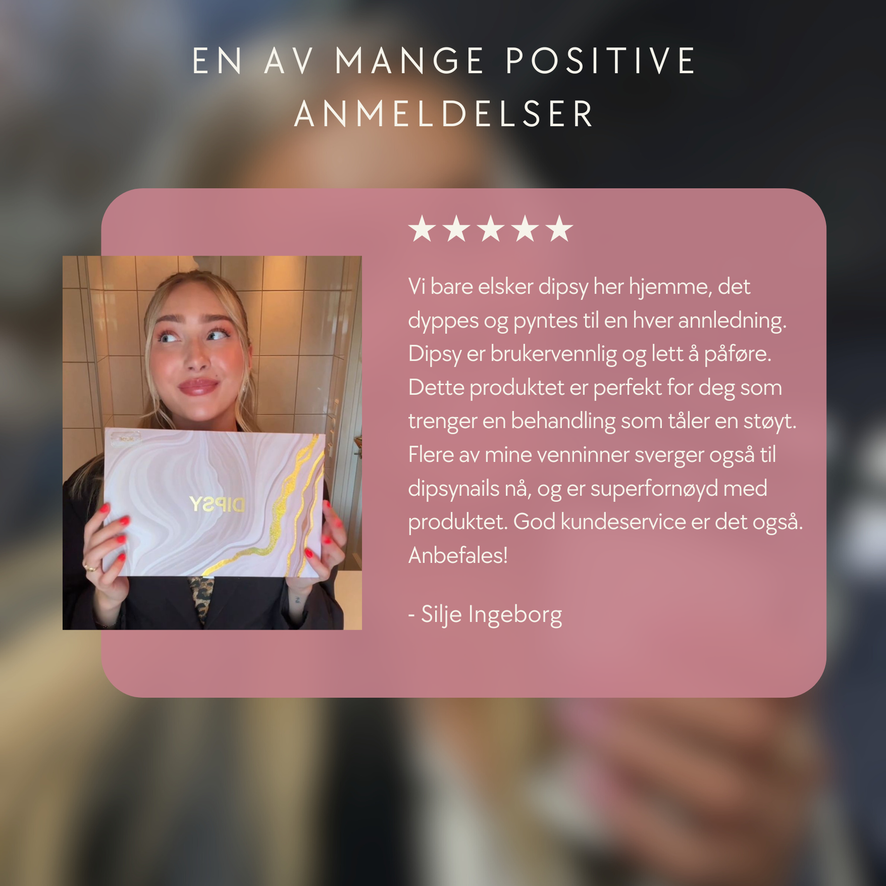 Oppdag Dipsy-startsettet og skap en feilfri manikyr i komforten av ditt eget hjem! Med vårt sett har du alt du trenger for å få vakre negler som varer i opptil tre uker.
